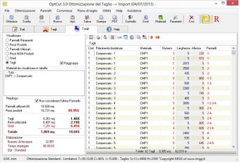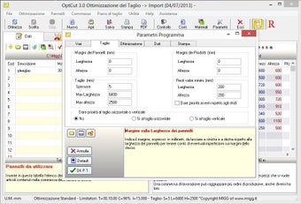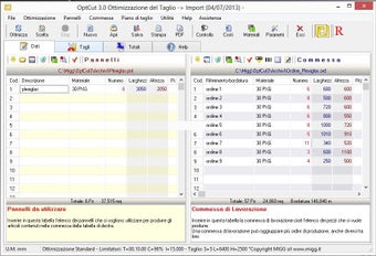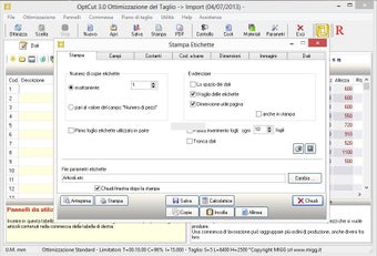 OptCut - Software per l'ottimizzazione del piano di taglio di profili e pannelli di qualsiasi materiale (vetro, legno, carta